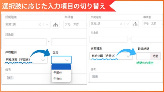Java Script API プラグイン機能 (ローコード対応)ご自身で独自カスタマイズやプラグイン開発ができます。(例:選択肢によって入力項目をコンボボックスや数字項目に切り替える