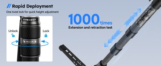 SIRUIが誇るラピッドシステム(Rapid System)の進化版「SVM-145P」がついに登場。一脚操作の常識を覆す超速セットアップ機能を搭載し、急なシーンでも素早くフレーミング可能!