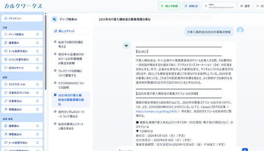 株式会社MAKOTO Prime(宮城県仙台市若林区、代表取締役:竹井智宏)は、このたび中小企業向け生成AIツール『カルクワークス』に新機能として「ディープ検索AI」を搭載いたしました。