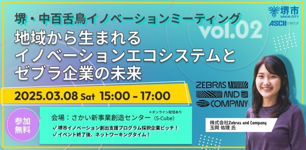 2025年3月8日に大阪府堺市の中心にある中百舌鳥「S-Cube(さかい新事業創造センター)」で社会課題の解決に向けた堺市の取組を全国に発信するイベント「堺・中百舌鳥イノベーションミーティング」が開催された。