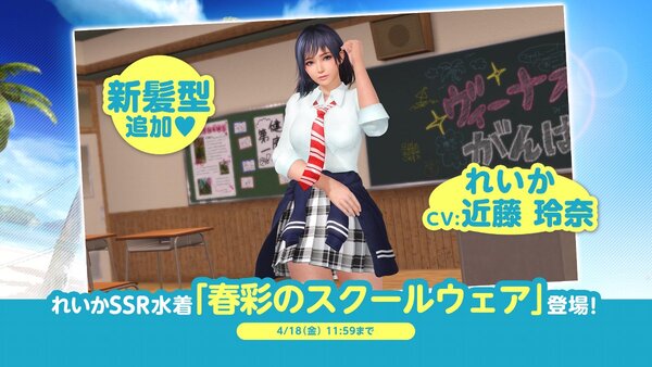 コーエーテクモゲームスは4月11日、PC(DMM GAMES/Steam)にてサービス中のバカンスゲーム『DEAD OR ALIVE Xtreme Venus Vacation』について、「れいか(CV:近藤玲奈さん)」をトレンドコーデガチャに初めて追加した。