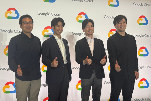 (左から)Google Cloud AI/ML 事業開発部長 下田倫大氏、Google Cloudテクノロジー部門 兼 事業開発本部 執行役員の寳野雄太氏、Google Cloud グローバルスペシャリティセールス Google Workspace 事業本部 ソリューション営業部 本部長 吉村光平氏、Google Cloud 技術部長(インフラ、アプリケーション開発、データベース)の安原稔貴氏