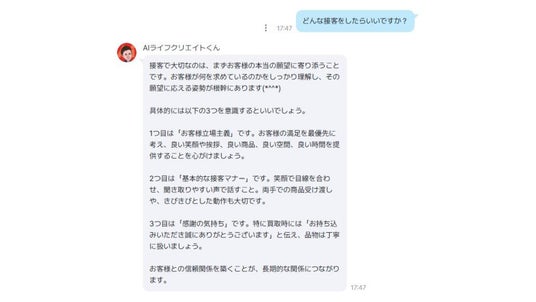 「AIライフクリエイトくん」会話例