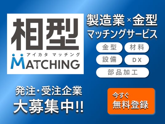 株式会社アイカタマッチング(本社:愛知県名古屋市、代表取締役:前田雄太)は、金型業界に特化したビジネスマッチングサービス「相型MATCHING」(アイカタマッチング)のサービス内容を1分間で伝えるYouTube動画を新たに公開しました。
