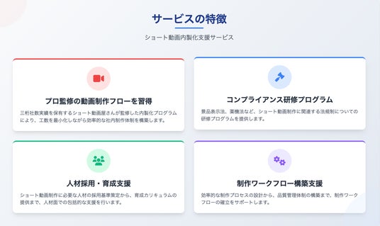 このような背景から、当社のショート動画制作の教育ノウハウと社会保険労務士事務所の専門知識を組み合わせた包括支援サービスを開発いたしました。