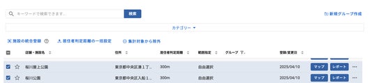 このアップデートにより、複数の施設のエリア範囲を統合し、1つの施設として一括して来訪者数を分析できるようになります。例えば公園の北側と南側、百貨店の別館と本館など、一部が飛び地にある複数施設(道路で分断された施設/離れた場所にある施設)をまとめて分析することができるようになります。