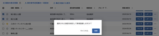 1.施設管理画面において、統合したい施設をチェックボックスで複数選択