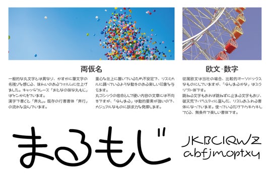 ほんまるかなは、REN FONTタイプデザイナー 金井和夫の普段使いの手書き文字をベースとしてデザインされた書体です。わずかに筆文字の筆跡を残した、一風変わった丸文字的フォルムイメージを持っています。