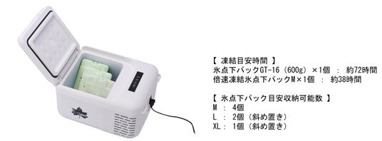 本アイテムは、最低温度-25℃という圧倒的な冷却性能で、別売りの強力保冷剤「氷点下パック(R)」シリーズの凍結に最適なポータブル電気冷凍庫です。氷点下パック(R)の冷凍用にご使用いただくことでスムーズに凍結でき、ご自宅の冷凍庫スペースを圧迫せずに保管することができます。