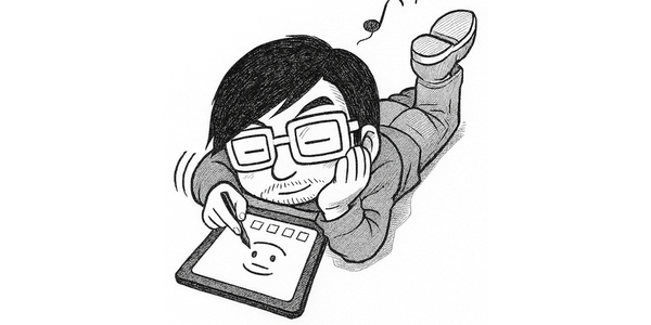 つまり、「画像生成」ではないが人間が手でやったらとても大変に見える「画像変換」をAIがやってくれるというものである。そこで、すぐさま石田さんにメールを出して「私のアイコンも変換してほしいのですが」とお願いしたのだった。私のアイコンというのは、ふだんSNSやYouTubeなどで使っているf-watabeさんに作ってもらった次の画像である。