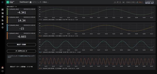 時系列グラフやテーブル表示対応し、Webブラウザからデータをダウンロード可能。