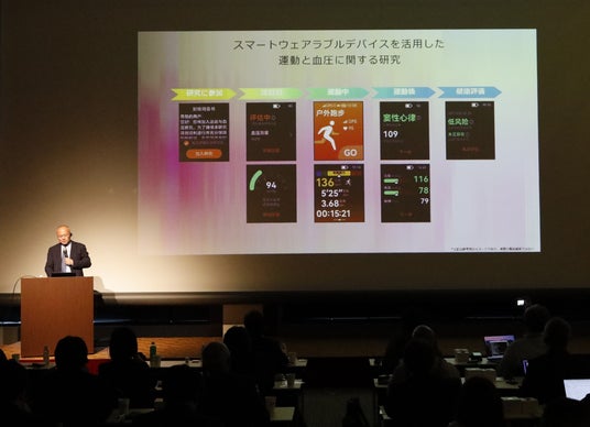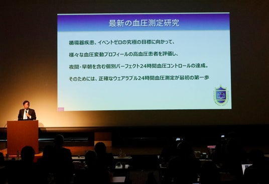 また最新の血圧測定研究のまとめとして、「循環器疾患、イベントゼロの究極の目標に向かって、様々な血圧変動プロフィールの高血圧患者を評価し、夜間・早朝を含む個別パーフェクト24時間血圧コントロールの達成のために、正確なウェアラブル24時間血圧測定が最初の一歩となりえる」と話しました。