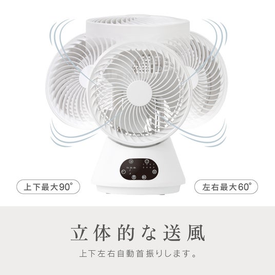 上下左右の首振り機能により、立体的な送風で効率的に空気を循環。リモコン付きモデル(ZSL-A4DB/ZSL-D4DB)は上下90°・左右60°の自動首振り機能を搭載、メカモデル(ZSL-A1DB)は左右60°の自動首振りと手動による上下角度調整が可能です。