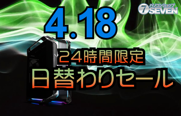 セブンアールジャパンは、4月18日に「2025/4/18 24時間限定セール」を開催。最新のゲーミングPCやデスクトップPCが最大95,000円引きという割引を提供する。