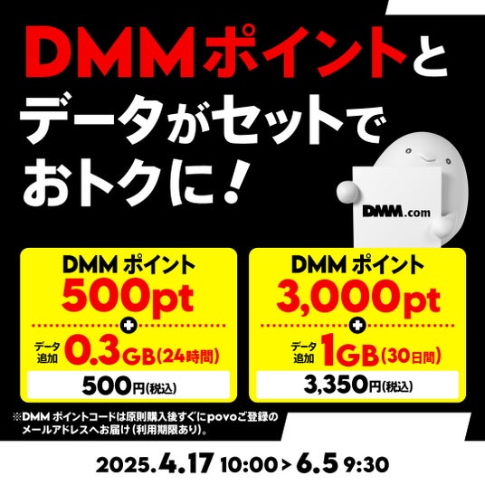 povo、「DMMポイント」がセットのデータトッピングを期間限定提供