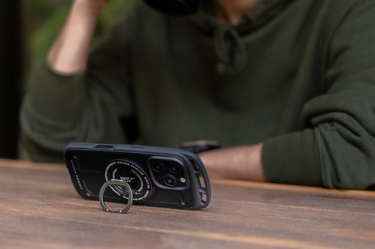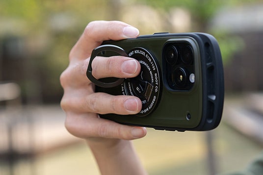 スマホリングとして指を通すことで安定したグリップを確保し、スマートフォンの操作性がアップ。