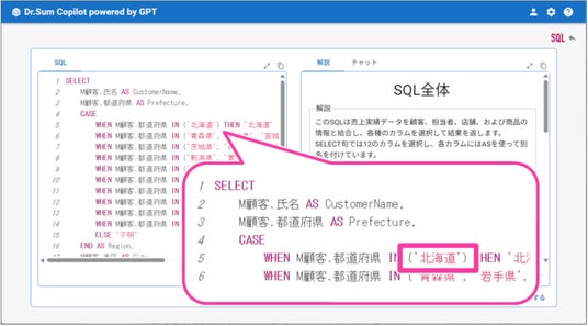 ウイングアーク1st株式会社(本社:東京都港区、代表取締役 社長執行役員CEO:田中 潤、以下、ウイングアーク)は、データ分析基盤「Dr.Sum」において、生成AIを活用したSQLを自動で解析・解説する新機能「Dr.Sum Copilot」を4月18日(金)より提供開始します。