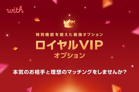 価値観重視の出会いを提供するマッチングアプリ「with」、恋活・婚活の“次の一歩”をサポートする「ロイヤルVIPオプション」が新登場