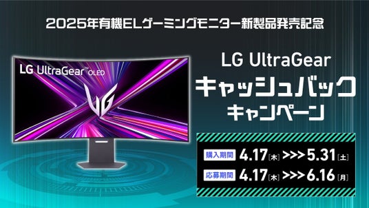 LGエレクトロニクス・ジャパン株式会社(代表取締役:孫 成周(ソン・ソンジュウ)、本社:東京都中央区)は、ゲーミングモニター「LG UltraGear(TM)」シリーズの2025年モデルの発売を記念して実施中の『LG UltraGear(TM)キャッシュバックキャンペーン』について、本日2025年4月17日(木)より、対象モデルを追加しましたので、お知らせいたします。