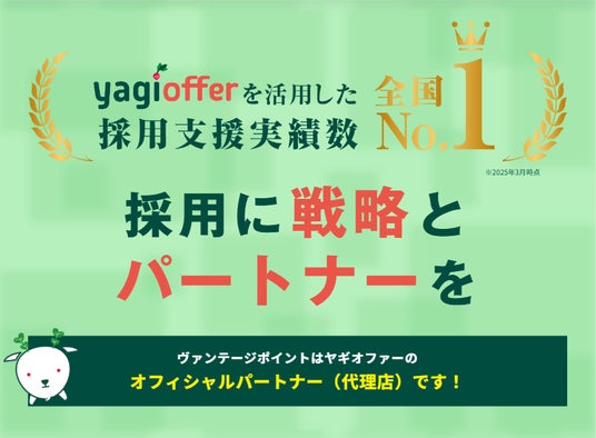 【ヴァンテージポイント株式会社】yagiofferを活用した採用支援社数実績、全国1位(2025年3月現在)を獲得しました