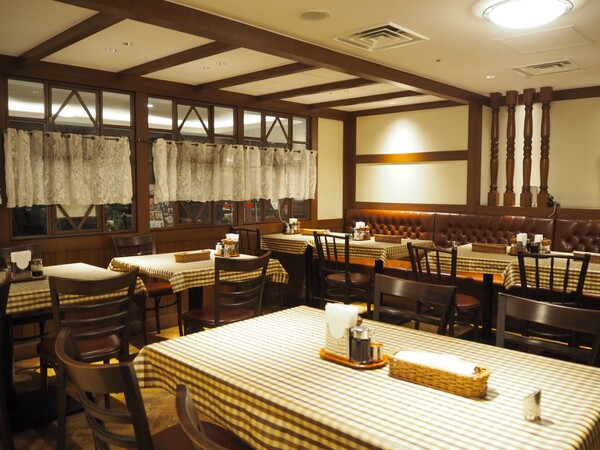 店内も、外観と同じく店内もウッディな造りで、赤や茶色のチェックのテーブルクロスや、窓に掛かるカフェカーテンがクラシカルな雰囲気いっぱい。昔ながらの洋食屋さんといった趣です。