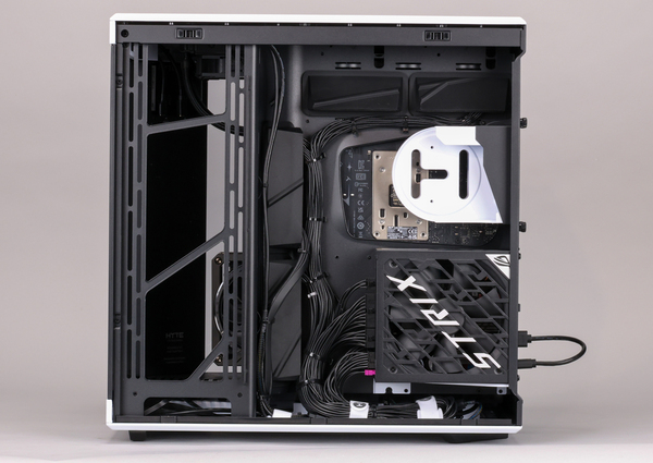 最後に電源ユニットも、ASUS製の「ROG Strix 1200W Platinum」と、ここもASUS製品で統一。このROG Strix 1200W Platinumは、80PLUS Platinum認証を受けた高品質モデルで、定格出力は1200Wを誇る。Ryzen 7 9800X3DとRTX 5090との組み合わせでも、この大出力電源であれば、十分といっていい。