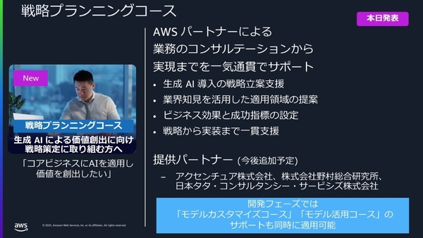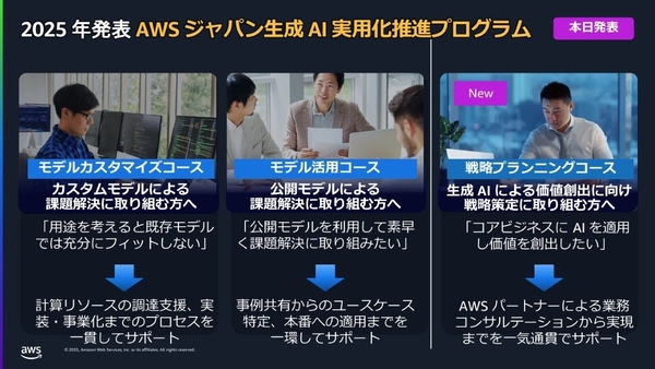 さまざまな企業で成果を上げている「生成AI実用化推進プログラム」。2025年は、AIモデルを作る・利用する企業への支援に加えて、生成AI実用化までの戦略策定を支援する「戦略プランニングコース」を追加する。