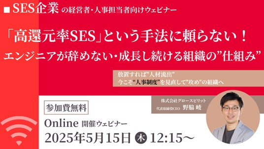 株式会社グロースピリット(東京都千代田区、代表取締役:野脇 崚)は「SES企業における、離職せずに成長し続けるエンジニア組織」というテーマでウェビナーを開催します。