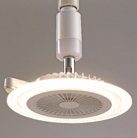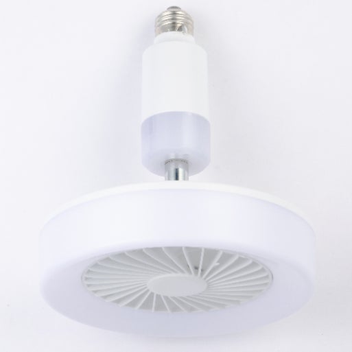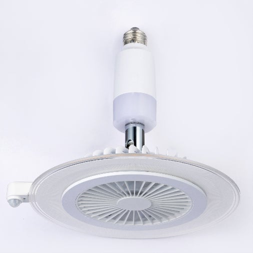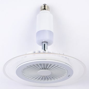 今回発売の新商品は、LED電球と送風ファンが一体型の商品で、口金サイズ E26型で工事不要、電球を交換すれば リモコン操作で 『風』 と 『明かり』 をコントロール出来る “空気を循環する照明” です。