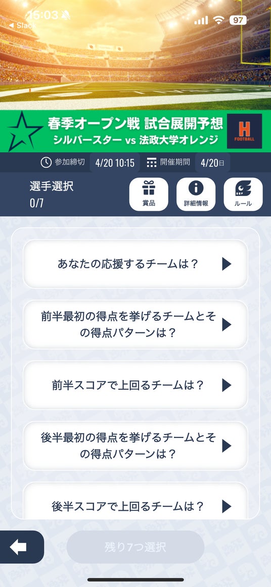 ・予想を全て答えて「ドラフトに参加」をクリック(参加費無料)