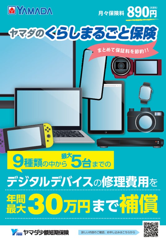 ヤマダホールディングスグループの株式会社ヤマダ少額短期保険(代表取締役:藤堂 隆弘、以下、ヤマダ少短)は、大型テレビやパソコン、スマートフォン等のデジタルデバイスの故障・破損時の修理費用を補償する保険「デジタルデバイス修理費用補償保険」(以下、ヤマダのくらしまるごと保険)の販売を2025年4月18日(金)より開始いたします。