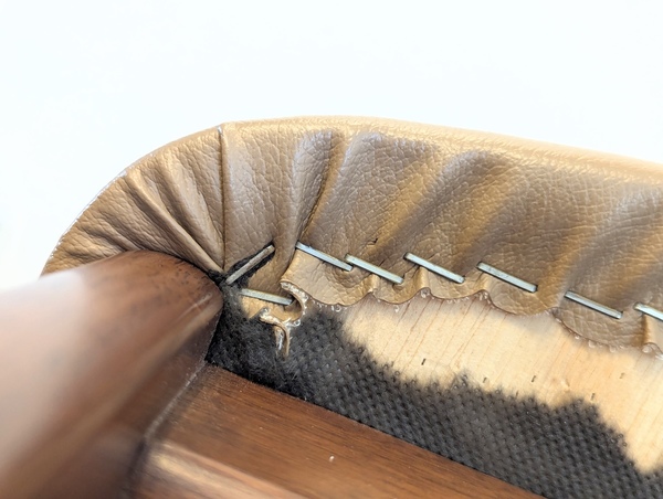 タッカーは手動のものであれば2000円前後で手に入りますし、もっと力の弱いものでいいというのであれば、100均の330円商品にもあります。1つ持っていると、結構便利。布や革を張る以外にも、釘を打つまでもない薄板の固定、小さな木箱の作成、ボンドが乾くまでのズレ防止など、ちょっとした工作で役立ちます。