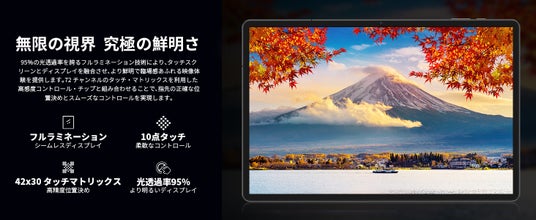 95%の光透過率を誇るフルラミネーション技術により、タッチスクリーンとディスプレイを融合させ、より鮮明で臨場感あふれる映像体験を提供します。72チャンネルのタッチ・マトリックスを利用した高感度コントロール・チップと組み合わせることで、指先の正確な位置決めとスムーズなコントロールを実現します。
