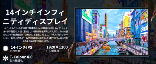 14インチのFHD IPS画面で臨場感あふれる映像をお楽しみください。大きな表示画面で、本当に素晴らしい視聴体験を実現します。T70はTeclast独自のカラー最適化技術T-Colour 4.0を搭載し、色とコントラストをインテリジェントに向上させ、ゲームや映画鑑賞に最適な、より鮮やかで人の心を捉えるような画像を実現します。
