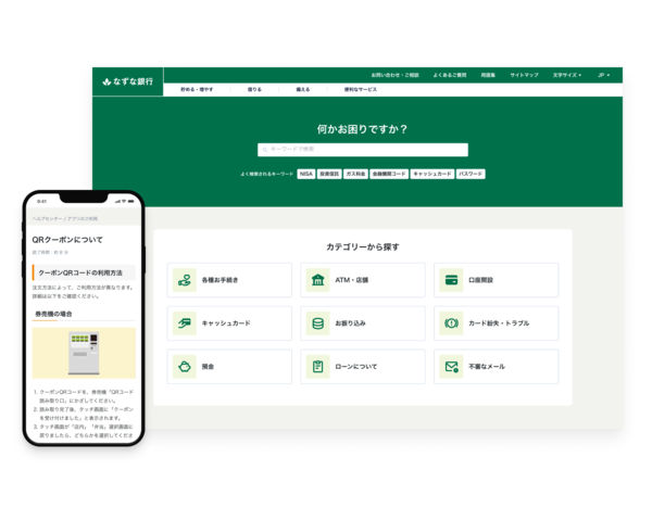 このほかに、検索キーワードやFAQの閲覧数、自己解決率、離脱状況など、「流入・検索・解決」ごとに利用顧客のステータスをグラフで可視化するダッシュボード機能や、企業のブランドガイドラインに基づいた色・ヘッダおよびフッダのデザインなどブランドイメージに応じた柔軟なデザインカスタマイズを行う機能を備えているという。