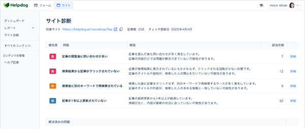 また、FAQは、公開後の運用フェーズで改善が不可欠とされるが、多くの企業では「どのFAQが読まれていないか」、「どの検索語が解決に至っていないか」といった分析が手間となり、放置されがちだという。「ヘルプドッグ」では検索ログや閲覧データをAIが解析し、検索されたのに解決されなかったキーワードや、未整備のトピックなどを抽出。改善の優先度を提示することで、現場担当者の作業効率を高めながら、コンテンツの継続的な最適化を支援するとのこと。