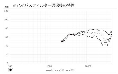 ●出力音圧レベル : 76 dB/w(1m) (※ハイパスフィルター通過後の値)