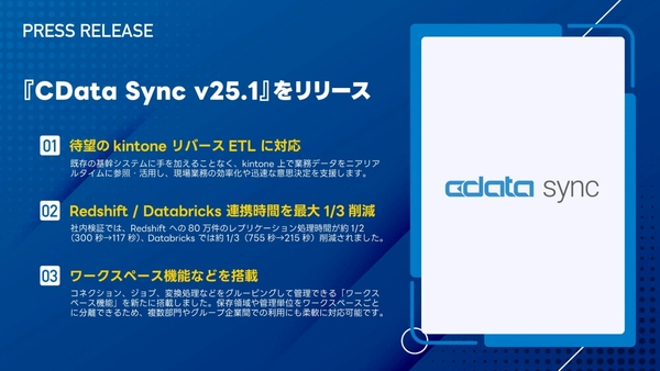 CData Software Japanは、2025年4月15日、ETL・ELTツールである「CData Sync」の新版「V25.1」を提供開始した。