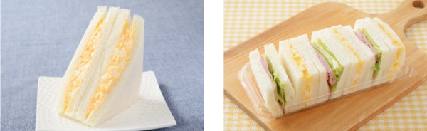 具材のたまごサラダを増量した上で、価格もリニューアルしたたまごサンド。従来品より酸味をやわらげ、たまごの風味をより感じられるたまごサラダに変更。食べたときの口当たりがソフトになるよう、パン生地の配合も見直したという。