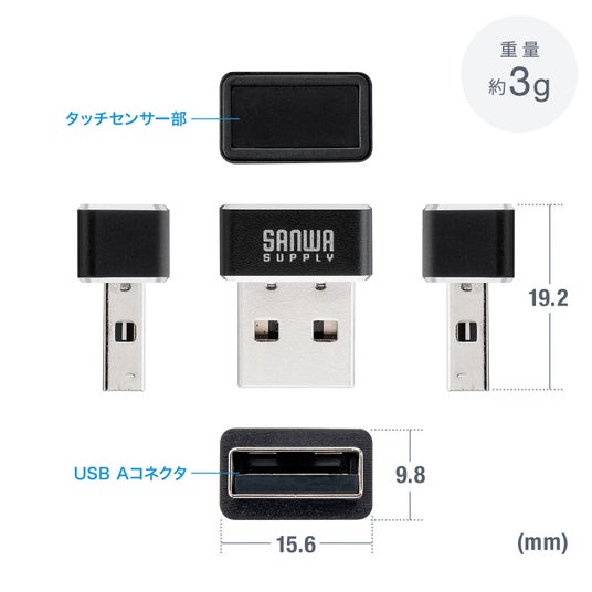サイズは幅15.6×奥行き19.2×高さ9.8mmで、重量は約3gです。