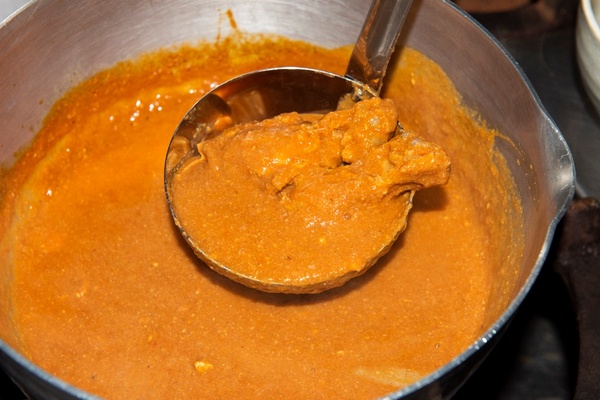 そこにクミンやコリアンダー、カルダモン、シナモン、クミンなど10種類近いスパイス、主役である龍ケ崎トマトを合わせ、バターチキンカレーのつけ汁に昇華させた。