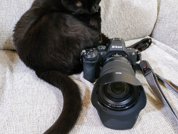 猫って被写体としての難易度が高い……何しろ、寝たり起きたり止まったり、走ったり飛んだり高いとこのぼったり、低いとこに隠れたり転がったりあくびしたり、舌を出したりねじれたりまるまったり、伸びたり縮んだり、鳴いたり笑ったり怒ったりと、あらゆる動きや表情を見せてくれるので、カメラにも総合力が要求されるわけで、その点、Z5IIは汎用性が高いのではじめてのデジタル一眼としてオススメだ。