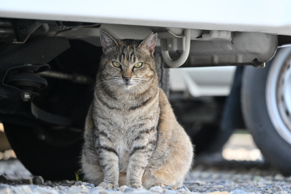 そしてこれを手にぶらぶらと季節の作例(つつじとか)を撮りに自転車で出動した際、この近くに猫がいつもいる駐車場があったなと思いだして足を向けてみると……、1匹もいない。