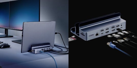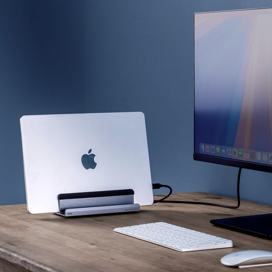 ノートパソコンスタンドとドッキングステーションが一体型になっているため、省スペースでスタイリッシュに設置することができます。