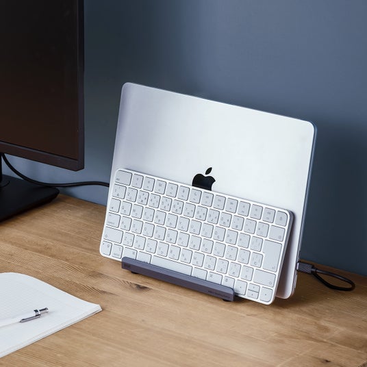 クラムシェルに最適な縦置きスタンド一体型です。幅は2cm/2.5cmの2つの幅で設置することができます。縦置きスタンドは2つ付いているのでノートパソコン以外にも、キーボードやスマホを一緒に置くことができます。