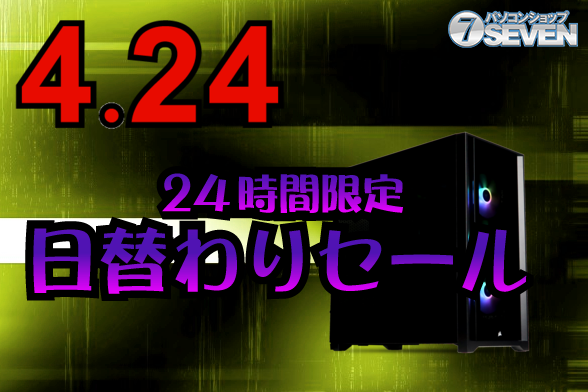 セブンアールジャパンが運営するパソコンショップSEVENは、4月24日に一日限定の大セールを開催する。このセールでは、最新のゲーミングPCやデスクトップPCが最大で71,000円引きとなり、お得に購入できるチャンスだ。