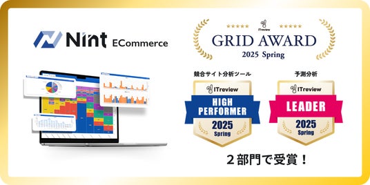 株式会社Nint(本社:東京都新宿区、代表取締役:吉野順子、以下「Nint」)が提供するECモールの市場動向データツール「Nint ECommerce」は、「ITreview Grid Award 2025 Spring」において、予測分析部門で7期連続となる最高位「Leader」を受賞しました。さらに、競合サイト分析ツール部門では「High Performer」を受賞しましたので、お知らせいたします。