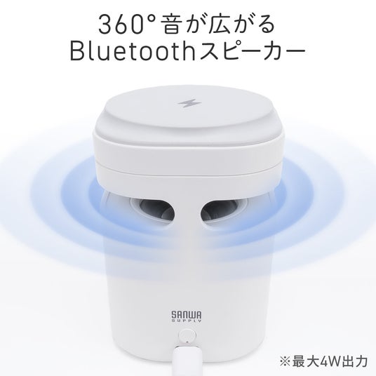 スマホやイヤホンなどをワイヤレス充電可能な、コンパクトサイズのBluetoothスピーカー