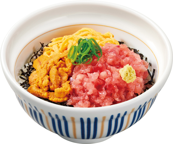 米酢を使用したタレをかけたごはんに刻み海苔を敷き、濃厚なウニとマグロたたき、そしてなか卯の“こだわり卵”を使った錦糸卵を盛り付けた丼ぶり。