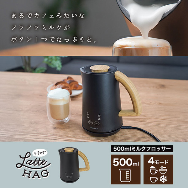 アスキーストアでは、ボタン一つでカフェのようなフワフワミルクが楽しめる電動ミルクフローサー「ラテハグ」を発売中。